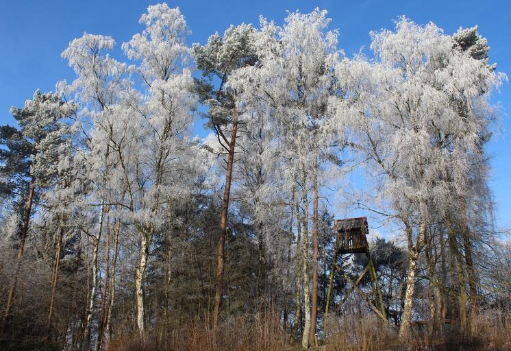 Keywords: winter winter forest winter magic treetop treehouse winter time edge of the woods trees canopy sky wintry nature aesthetic eiskristalle forest snow cold frozen frost landscape iced birch pine mood waldheim