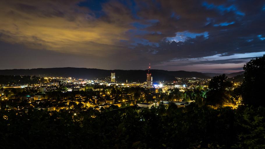 Keywords: winterthur night sky lighting city long exposure light clouds contrast sea of light night photograph evening bird's eye view
