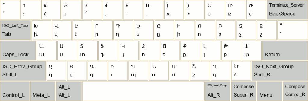 | Keywords: WinXP Keyboard Layout Western Armenian.gif The Western Armenian keyboard layout that ships with Windows XP; it has recently been included in Linux via Freedesktop org en wikipedia 2006-11-16 Serouj wikipedia en Serouj original upload log page en wikipedia WinXP_Keyboard_Layout_Western_Armenian gif 2006-11-16 07 58 Serouj 1018×336×4 16987 bytes <nowiki>The Western Armenian keyboard layout that ships with Windows XP; it has recently been included in Linux via Freedesktop org </nowiki> Keyboard layouts Armenian alphabet |