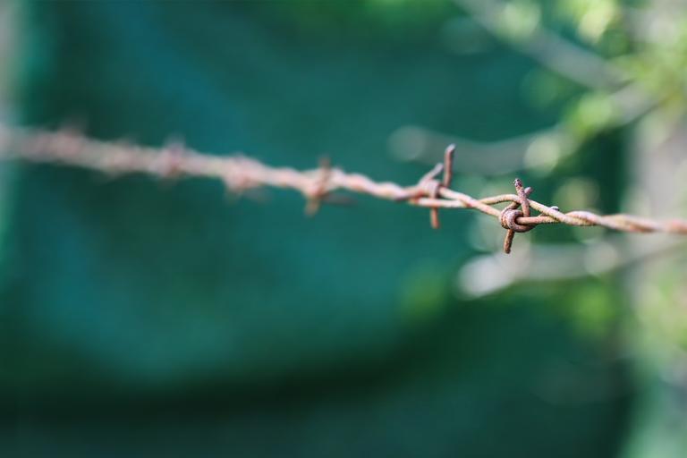 Keywords: wire spur fence barbed wire brown close detail macro