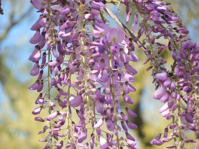 Keywords: wisteria bloom purple flower white lilac spring violet blossom plant pastel soft summer garden hanging blooming vertical cluster bud nature vine lavender green color petal perfume day leaf