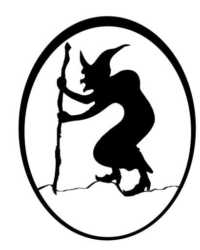 Keywords: witch badge oval wizard sorcerer halloween black silhouette spooky stick