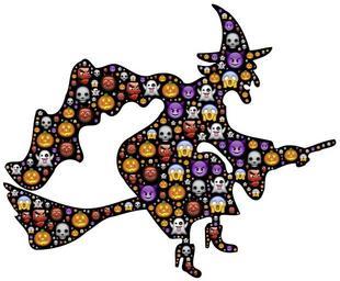 Keywords: witch halloween emoji scary frightful spooky icons symbol holiday celebration black dark mysterious death fear superstition fearful evil