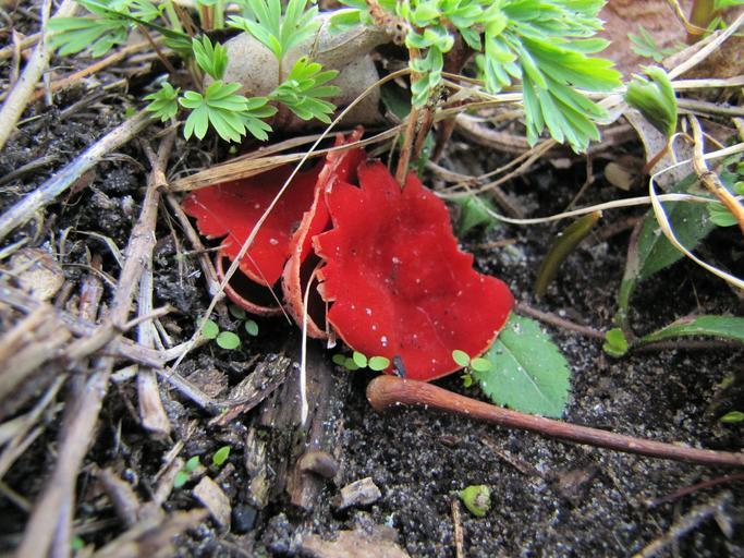 Keywords: red fungus ground spring michigan march witches cauldron witchescauldron outdoor Red witches cauldron fungus Red witches cauldron fungus