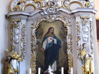| Keywords: Wittersheim StUlrich 25.JPG Alsace Bas-Rhin Wittersheim Eglise Saint-Ulrich Autel secondaire Vierge Marie avec statues baroques de Ste Barbe et Ste Catherine 1766 Tableau de Louis et Carola Sorg 1860 own 2012 Ralph Hammann Cc-zero Artwork / Œuvre d'art / Kunstwerk oil canvas cm 135 80 Eglise Saint-Ulrich Wittersheim Autel secondaire PM67000471 IM67002016 object history Tableaux non classés réalisés par les peintres strasbourgeois Louis et Carola Sorg en 1860 other versions Ralph Hammann PD-old accession number Photographs of Wittersheim by Ralph Hammann Taken with Canon PowerShot SX20 IS Autels secondaires Église Saint-Ulrich de Wittersheim Baroque reliefs in Alsace Reliefs of putti in Alsace Baroque statues in Bas-Rhin Wooden statues in Bas-Rhin 18th-century statues in Alsace 1766 statues in France Statues of Saint Barbara in France Statues of Saint Catherine of Alexandria in France Church paintings in Bas-Rhin Louis Sorg Caroline Sorg Neoclassical church paintings in Alsace 19th-century church paintings in Alsace Paintings of Immaculata 1860 oil on canvas paintings in France 1860 works in Alsace |