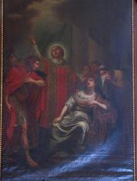 Keywords: Wiwersheim StCyriaque 64.jpg Alsace Bas-Rhin Wiwersheim Eglise St Cyriaque Notre-Dame des Sept-Douleurs Tableau St Cyriaque diacre XVIIIe own 2012 Ralph Hammann cc-by-sa-3 0 Artwork / Œuvre d'art / Kunstwerk Artwork Creator Joseph Melling Saint Cyriaque en habits de diacre exorcisant la fille de l'empereur Dioclétien Arthémia 1787 oil canvas cm 350 200 Eglise Saint Cyriaque Wiwersheim IM67010024 PM67000475 object history Cette toile datée 1787 et signée Joseph Melling proviendrait du maître-autel de l'ancienne église paroissiale dédiée à ce saint et dont le culte fut transféré dans l'édifice actuel en 1888 other versions Ralph Hammann PD-old-100 accession number Interior of Église Saint-Cyriaque de Wiwersheim Photographs of Wiwersheim by Ralph Hammann Taken with Canon PowerShot SX20 IS Objets monuments historiques in Wiwersheim Baroque church paintings in Alsace 18th-century church paintings in Alsace Saint Cyriacus Objets monuments historiques in Bas-Rhin church paintings