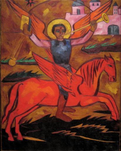 | Keywords: WLA lacma Archangel Michael.jpg  WLA lacma M 88 22 http //collections lacma org/node/170685 artifacts Beesnest McClain 35619509 N03 3317726907 Natalia Goncharova Russia 1881 - 1962 <br /> Religious Composition; Archangel Michael 1910<br /> Painting Oil on canvas Unframed 51 x 40 in 129 5 x 101 6 cm <br /> Purchased with funds provided by George Cukor M 88 22 <br /> Uploaded from the http //www flickr com/groups/wikipedia_loves_art/pool/ Wikipedia Loves Art photo pool on Flickr Photographed 2009 02 Wikipedia Loves Art participant http //www flickr com/groups/wikipedia_loves_art/pool/tags/artifacts/ artifacts PD-RusEmpire Natalia Goncharova Icons of Saint Michael horseman Russian paintings in the Los Angeles County Museum of Art Red horses in art |