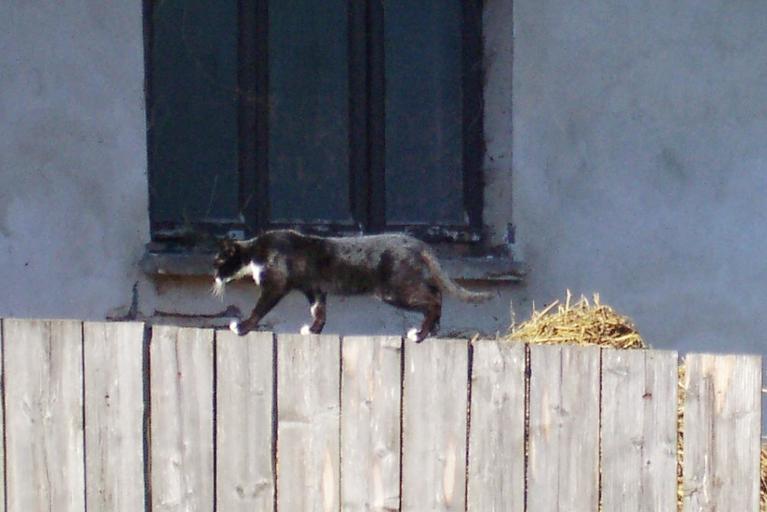 Keywords: Wlazł kotek.jpg In Zawoja village Southern Poland Author - Jasra Photo by myself 2006-07-14 own assumed Jasra Cats upon fences cats balancing Cats of Poland Tuxedo patterned black and white cats