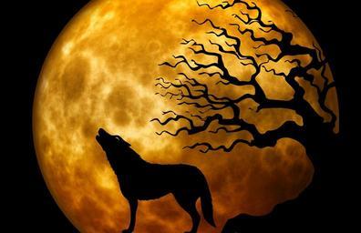 Keywords: wolf howl moon weird surreal atmosphere creepy silhouette