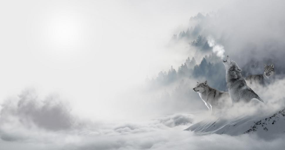 | Keywords: wolf wolves snow wolf landscape atmosphere animal world predator wild animal snow pack mountains valley nature mood clouds fog winter mood cold frost trees forest winter wintry idyllic atmospheric firs mystical fir forest magic forest magic fairy tales 4 k |