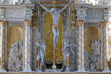 Keywords: wolfenbüttel lower saxony city old town historically church altar sculpture passion cross believe crucifixion christianity jesus bible pillar christ