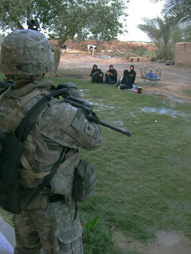 | Keywords: Wolfhounds Continue to Search for Caches DVIDS93711.jpg en Spc Donald Lane a Kansas City Mo native stands watch over four women while a house is searched on June 2 in a small village in the Taji Qada northwest of Baghdad Lane serves as a rifle man with Company A 1st Battalion 27th Infantry Regiment Wolfhounds 2nd Stryker Brigade Combat Team Warrior 25th Infantry Division Multi-National Division “ Baghdad U S Army photo/Sgt Brad Willeford 2008-06-02 https //www dvidshub net/image/93711 93711 2008-06-10 15 42 TAJI IQ PD-USGov 25th Infantry Division United States Images from DoD uploaded by Fæ |