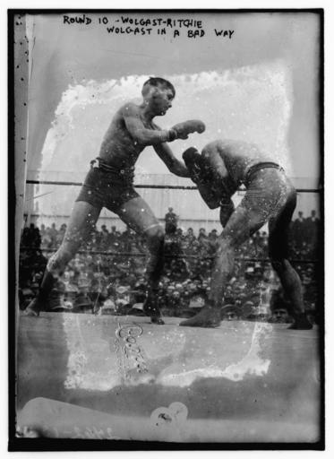 | Keywords: Wolgast v. Ritchie title fight, 1912.jpg Photo of Willie Ritchie landing a blow on Ad Wolgast Caption reads Wolgast in a bad way http //hdl loc gov/loc pnp/ggbain 11010 1912-11-28 Bain News Service public domain PD-Bain Boxers from the United States Willie Ritchie Ad Wolgast |