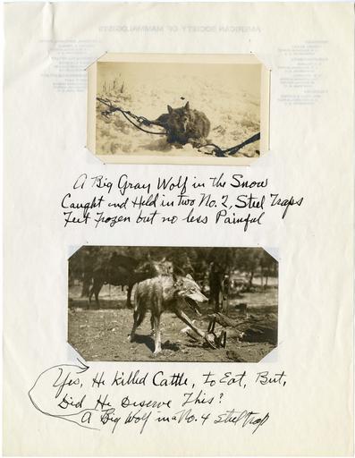 | Keywords: smithsonian institution smithsonianinstitution smithsonian institution archives smithsonianinstitutionarchives wolf photos trap 2012_11 201211 text monochrome Creator: Clay Hunter and Don Stroenson Local number: SIA2011-1385 Summary: Photograph taken for Vernon Orlando Bailey during his work as field naturalist for the United States Department of Agriculture Bureau of Biological Survey. Bailey was particularly interested in creating more humane animal traps and devoted much of his time after retirement to this cause. Dates: 1909-1918 Collection: RU 007267, Vernon Orlando Bailey Papers, 1889-1941 and undated, Box 5, Folder 12. Repository: Smithsonian Institution Archives Related blog post: Mammalogy at the Intersection of Mercy and Truth View more collections from the Smithsonian Institution.. Creator: Clay Hunter and Don Stroenson Local number: SIA2011-1385 Summary: Photograph taken for Vernon Orlando Bailey during his work as field naturalist for the United States Department of Agriculture Bureau of Biological Survey. Bailey was particularly interested in creating more humane animal traps and devoted much of his time after retirement to this cause. Dates: 1909-1918 Collection: RU 007267, Vernon Orlando Bailey Papers, 1889-1941 and undated, Box 5, Folder 12. Repository: Smithsonian Institution Archives Related blog post: Mammalogy at the Intersection of Mercy and Truth View more collections from the Smithsonian Institution.. |