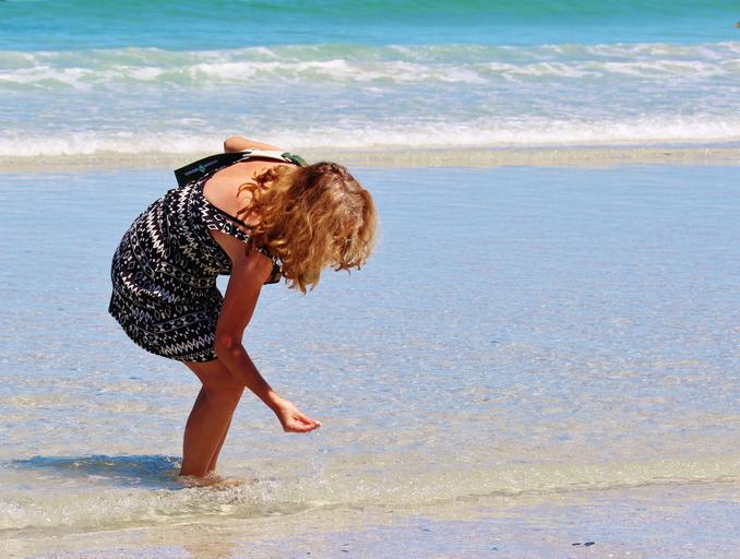 Keywords: woman beach sea ocean clam search