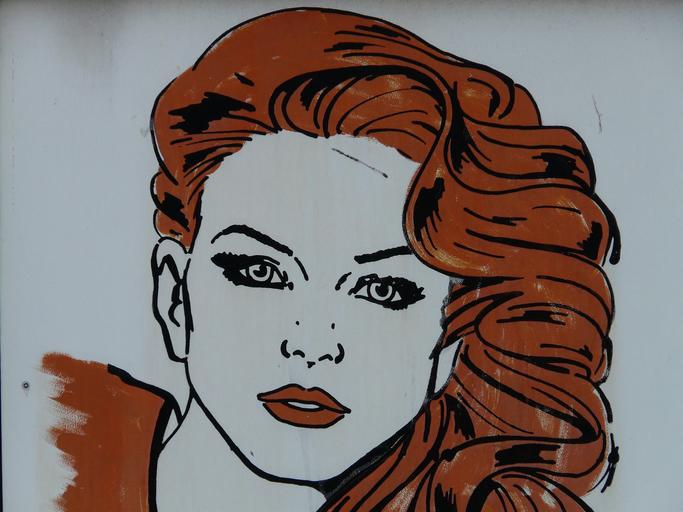 Keywords: woman hairstyle hair styling face portät eyes lips mouth nose drawing