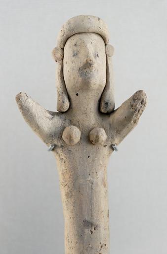 | Keywords: Woman hands raised Louvre AM244.jpg Female figure with hands raised polychrome terracotta Cypro-Archaic Age 7th century BC Cyprus Femme aux bras levés terre cuite polychrome Chypro-Archaïque VIIe siècle av J -C Chypre H 8 in 10 4 cm L 2 ½ in 6 5 cm D 2 ¾ in 7 5 cm Museum Louvre Department of Oriental Antiquities Sully first floor room 21 case 5g object history credit line Purchase 1890 accession number AM 244 Jastrow 2007 other versions Terracotta figurines from Cyprus Near Eastern Antiquities in the Louvre - Room 21 |