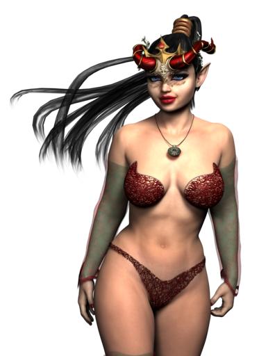 Keywords: woman horns hair beautiful plus-size large curvy fantasy bikini elf png transparent background render