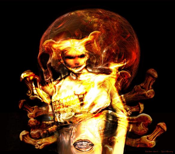 Keywords: woman man gold silver nero yellow red skeleton bones horns skull nightmare dream mouth bad good pain eyes delirium madness crazy reason destiny cruel