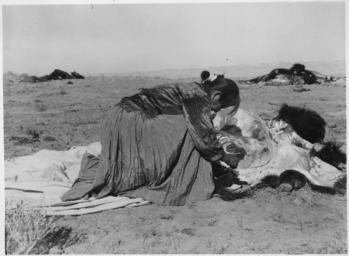 | Keywords: Woman skinning buffalo - NARA - 286016.jpg Scope and content Jesse Platero helping with the buffalo harvest General notes 286016 Local identifier Department of the Interior National Park Service Midwest Region 06/1962 - NARA's Central Plains Region Kansas City NREA 400 West Pershing Road Kansas City MO 64108 1953 Record group Record Group 79 Records of the National Park Service 1785 - 2006 Record group ARC 408 General Files compiled 1951 - 1964 Series ARC 285987 File unit File unit ARC Variant control numbers NAIL Control Number NRE-79-MR GF -1672 Other versions <gallery> File Woman_skinning_buffalo_-_NARA_-_286016 tif tif File Woman_skinning_buffalo_-_NARA_-_286016 jpg jpg </gallery> NARA-cooperation PD-USGov Bison fur-skins Fur manufacturing Native Americans in the United States Fur fashion in 1953 |