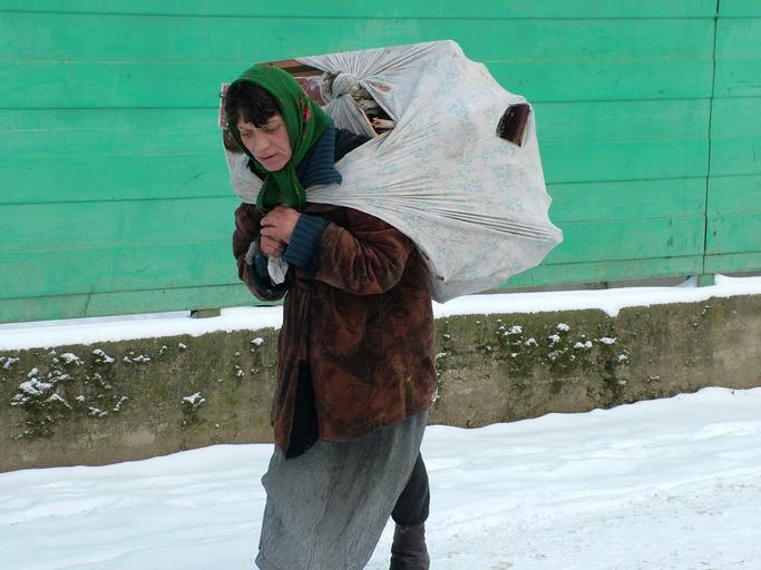 Keywords: woman winter snow people gypsies transcarpathia