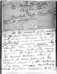 | Keywords: Woman's Bible Genesis.jpg en Handwritten draft of chapter II of The Woman's Bible 1895 covering Genesis 21-25 http //lcweb2 loc gov/mss/mcc/049/0001 jpg Single image at Library of Congress http //lcweb2 loc gov/cgi-bin/ampage collId mcc fileName 049/page db recNum 0 itemLink r ammem/mcc field DOCID+ lit mcc/049 Draft of Elizabeth Cady Stanton's The Woman's Bible ca 1895 151 pages scanned Library of Congress Elizabeth Cady Stanton between 1888 1895 public domain unknown Feminism | ||||