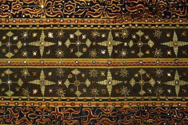 | Keywords: Woman's ceremonial skirt (tapis), Kauer people, Lampung, Sumatra, Indonesia, view 2, early 20th century, cotton, silk, glass mirrors - Textile Museum of Canada - DSC01022.JPG en Exhibit in the Textile Museum of Canada 55 Centre Avenue Toronto Ontario Canada Photography was permitted in the museum without restriction 2013-07-04 14 27 27 own Daderot cc-zero Textiles in the Textile Museum of Canada Uploaded with UploadWizard | ||||
