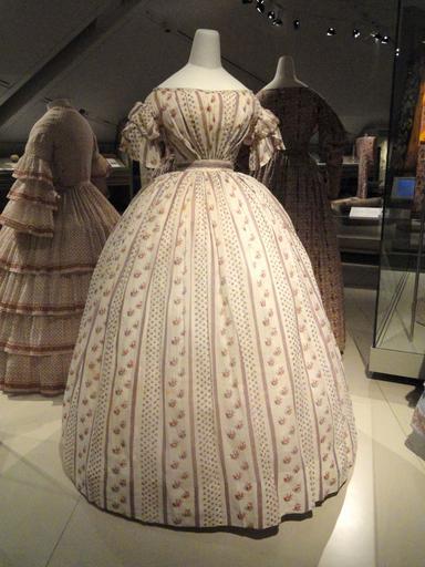 Keywords: Woman's day dress, United States, c. 1855-1860, cotton tabby - Patricia Harris Gallery of Textiles & Costume, Royal Ontario Museum - DSC09423.JPG Exhibit in the Patricia Harris Gallery of Textiles Costume Royal Ontario Museum Toronto Ontario Canada This exhibit is old enough so that it is in the public domain and photography was permitted in the museum I took this photograph and release it into the public domain Daderot 2011-11-20 16 02 30 Daderot cc0 cc0 Patricia Harris Gallery of Textiles Costume at the Royal Ontario Museum 1850s fashion |