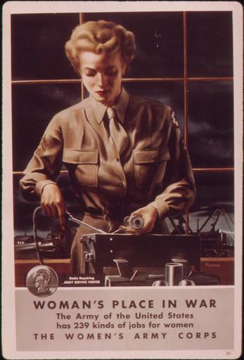 Keywords: "Woman's Place in War Radio Repairing The Women's Army Corps" - NARA - 513709.jpg Scope and content General notes 513709 Local identifier 44-PA-260C Office for Emergency Management Office of War Information Domestic Operations Branch Bureau of Special Services 03/09/1943 - 09/15/1945 Still Picture Records Section Special Media Archives Services Division NWCS-S National Archives at College Park 8601 Adelphi Road College Park MD 20740-6001 1941 - 1945 Record group Record Group 44 Records of the Office of Government Reports 1932 - 1947 Record group ARC 373 World War II Posters compiled 1942 - 1945 Series ARC 513498 File unit File unit ARC Variant control numbers NAIL Control Number NWDNS-44-PA-260C Other versions <gallery> File Woman's_Place_in_War_Radio_Repairing_The_Women's_Army_Corps _-_NARA_-_513709 tif tif File Woman's_Place_in_War_Radio_Repairing_The_Women's_Army_Corps _-_NARA_-_513709 jpg jpg </gallery> NARA-cooperation PD-USGov World War II posters from the United States |