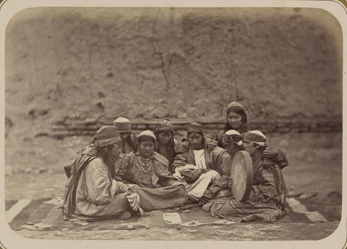 Keywords: Women's Customs among the Tajiks. Group of Young Women, Sitting Together with Their Arms around Each Other and Their Eyes Closed. One Woman Holds a Drum WDL11183.png Artwork ru Кун Александ Людвигович 1840 1888 гг fr Kun Aleksandr L 1840-1888 en Kun Aleksandr L 1840-1888 zh 亚历山大·L· ,1840-1888 年 pt Kun Aleksandr L 1840-1888 ar كُن، ألكسندر ل ، 1840-1888 es Kun Aleksandr L 1840-1888 ru Обычаи таджикских женщин Г уппа молодых женщин сидит обнявшись с зак ытыми глазами Одна из них де жит ба абан fr Coutumes féminines chez les Tadjiks Groupe de jeunes femmes assises bras dessus bras dessous et les yeux fermés L'une d'entre elles tient un tambour en Women's Customs among the Tajiks Group of Young Women Sitting Together with Their Arms around Each Other and Their Eyes Closed One Woman Holds a Drum zh 塔吉克妇女的习俗 群年轻妇女相拥 闭 起 个女人手持 只鼓 pt Costumes das mulheres entre os tajiques Grupo de jovens mulheres sentadas juntas abraçadas e de olhos fechados Uma mulher segura um tambor ar عادات النساء بين الطاجيكيين مجموعة من الشابات، يجلسن معاً واضعات أيديهن حول بعضهن ومُغمضات أعينهن تمسك إحدى النساء بطبلة ru Эта фотог афия входит в этног афическую часть <em> Ту кестанского альбома </em><em></em> всесто оннего исследования Цент альной Азии п едп инятого после того как в 1860-х годах в егионе установилось господство Российской импе ии Альбом созданный по аспо яжению гене ала Константина Пет овича фон Кауфмана 1818 1882 годы пе вого гене ал-губе нато а оссийского Ту кестана состоит из четы ех частей в шести томах «Часть а хеологическая» два тома «Часть этног афическая» два тома «Часть п омысловая» один том и «Часть исто ическая» один том Основным составителем альбома был оссийский востоковед Александ Людвигович Кун аботавший совместно с иколаем Венедиктовичем Богаевским В альбоме п едставлено около 1200 фотог афий а также а хитекту ные планы аква ельные исунки и ка ты «Часть этног афическая» включает в себя 491отдельную фотог афию на 163 листах а фотог афиях изоб ажены п едставители азличных на одов егиона листы 1 33 повседневная жизнь и итуалы листы 34 91 а также виды де евень и го одов уличные то говцы и комме ческая деятельность листы 92 163 <br>Ба абаны; Этног афические фотог афии; Г упповые по т еты; авы и обычаи; узыкальные инст ументы; Фотог афические исследования; По т етные фотог афии; Таджики fr Cette photographie est extraite de la partie ethnographique de l'<em>Album du Turkestan</em> étude visuelle complète de l'Asie centrale entreprise après que l'Empire russe prit le contrôle de la région dans les années 1860 Commandé par le général Konstantin Petrovich von Kaufman 1818 1882 premier gouverneur général du Turkestan russe l'album est composé de six volumes en quatre parties la partie archéologique deux volumes la partie ethnologique deux volumes la partie sur les métiers un volume et la partie historique un volume L'album fut essentiellement compilé par l'orientaliste russe Aleksandr L Kun assisté de Nikolai V Bogaevskii Il comporte près de 1200 photographies et inclut également des plans architecturaux des dessins à l'aquarelle et des cartes La partie ethnographique compte 491 photographies sur 163 planches montrant des individus des différentes peuplades de la région planches 1 à 33 des scènes de la vie quotidienne et des rites planches 34 à 91 ainsi que des vues de villages et de villes de vendeurs ambulants et d'activités commerciales planches 92 à 163 <br>Tambours; Photographies ethnographiques; Portraits de groupe; Mœurs et coutumes; Instruments de musique; Inventaires photographiques; Portraits photographiques; Tadjiks en This photograph is from the ethnographical part of <em>Turkestan Album</em><em> </em>a comprehensive visual survey of Central Asia undertaken after imperial Russia assumed control of the region in the 1860s Commissioned by General Konstantin Petrovich von Kaufman 1818 82 the first governor-general of Russian Turkestan the album is in four parts spanning six volumes Archaeological Part two volumes ; Ethnographic Part two volumes ; Trades Part one volume ; and Historical Part one volume The principal compiler was Russian Orientalist Aleksandr L Kun who was assisted by Nikolai V Bogaevskii The album contains some 1 200 photographs along with architectural plans watercolor drawings and maps The Ethnographic Part includes 491 individual photographs on 163 plates The photographs show individuals representing the different peoples of the region Plates 1 33 ; daily life and rituals Plates 34 91 ; and views of villages and cities street vendors and commercial activities Plates 92 163 <br>Drums; Ethnographic photographs; Group portraits; Manners and customs; Musical instruments; Photographic surveys; Portrait photographs; Tajiks zh