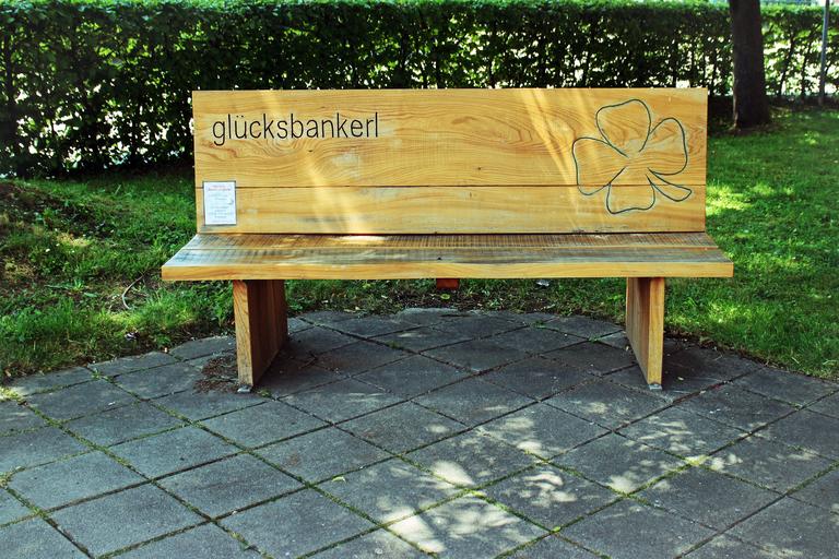 Keywords: wood bank bench out click sit motif luck lucky clover