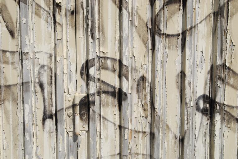 Keywords: wood flake structure weathered old background old paint cracked paint white chipping graffiti goal door boards