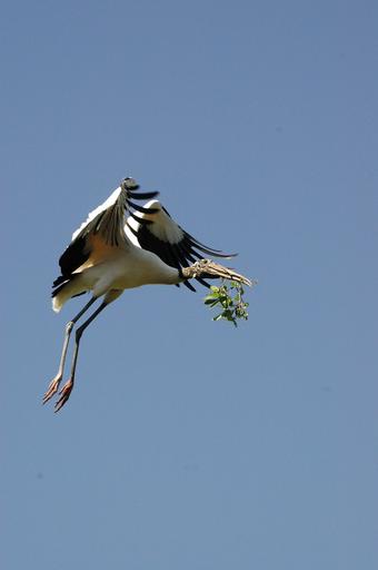 Keywords: wood stork bird flying wildlife nature large sky wings spread hunter feathers flight