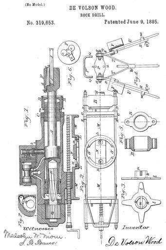 Keywords: WoodDrillPatent.png en The rock drill patented by De Volson Wood De Volson Wood Rock-drill US patent 319653 Issue date Jun 9 1885 De Volson Wood 1885 PD-old Engineers from the United States