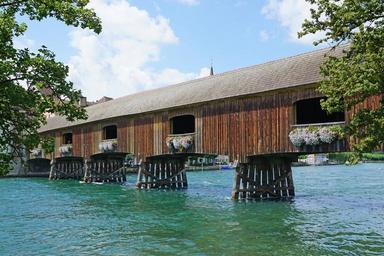 Keywords: wooden bridge customs bridge trusses saddle roof rhine switzerland germany germany-switzerland d-ch ch-d ch-eu eu-ch diessenhofen gailingen thurgau switzerland