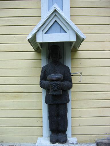 Keywords: Wooden poorboy in Muhos.JPG en The wooden poor boy of the church of Muhos Finland fi Muhoksen kirkon vaivaisukko sv Fattiggubbe vid Muhos kyrka Österbotten i Finland Own SeppVei 2008-07-01 Muhos Church Poor man statues in Finland Taken with Canon PowerShot A80 July 2008 in Finland |
