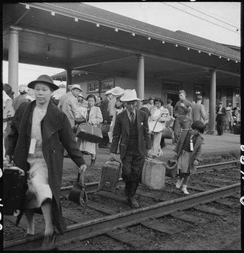 | Keywords: Woodland, California. Families of Japanese ancestry leave the station platform to board the train f . . . - NARA - 537810.jpg Scope and content The full caption for this photograph reads Woodland California Families of Japanese ancestry leave the station platform to board the train for the Assembly center about 125 miles away About 750 people of Japanese ancestry have been evacuated from this area under Civilian Exclusion Order Number 78 General notes 537810 Local identifier 210-G-C498 Department of the Interior War Relocation Authority 02/16/1944 - 06/30/1946 NARA-Author Lange Dorothea 1895-1965 Photographer 1372774 <br /> Still Picture Records Section Special Media Archives Services Division NWCS-S National Archives at College Park 8601 Adelphi Road College Park MD 20740-6001 1942-05-20 Record group Record Group 210 Records of the War Relocation Authority 1941 - 1989 Record group ARC 537 Central Photographic File of the War Relocation Authority compiled 1942 - 1945 Series ARC 536000 File unit File unit ARC Variant control numbers NAIL Control Number NWDNS-210-G-C498 Other versions <gallery> File Woodland _California _Families_of_Japanese_ancestry_leave_the_station_platform_to_board_the_train_f_ _ _ _-_NARA_-_537810 tif tif File Woodland _California _Families_of_Japanese_ancestry_leave_the_station_platform_to_board_the_train_f_ _ _ _-_NARA_-_537810 jpg jpg </gallery> NARA-cooperation PD-USGov Japanese American internment processing in Woodland California Dorothea Lange |
