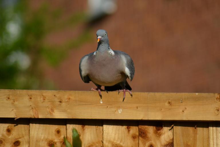 Keywords: woodpigeon pigeon beak columba palumbus wild bird sitting on fence feathered nature