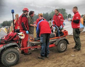 | Keywords: Woodstock festival medical.jpg  en The Woodstock gathering Festival The medical services at work 4 o'clock in the morning - drugs overdose case Own Omasz 2008-08 Przystanek Woodstock 2008 Paramedics in Poland Ambulances in Poland Quads Red trailers |