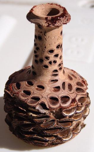 Keywords: Woodworked Banksia grandis email.jpg Woodworked Banksia grandis cone Photo Cas Liber 2006-06-25 own assumed Casliber Banksia grandis Banksia infructescences