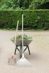 Keywords: work wheelbarrow rake gardening construction work faceplate transport tools sliding barrow blade