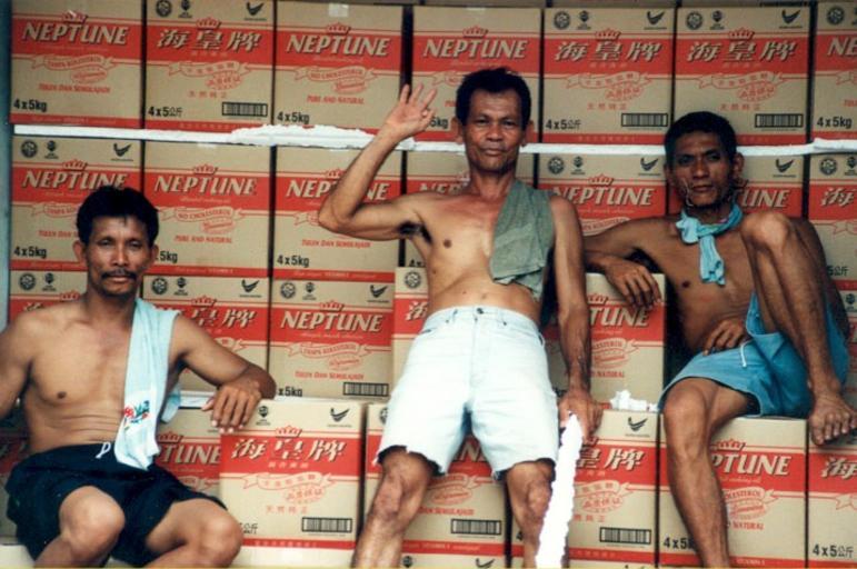 Keywords: Workers, Kota Kinabalu, Malaysia.jpg Author Webber Source own work Date 1999 2007-01-16 own assumed Webber Topless men Men of Malaysia People in Sabah