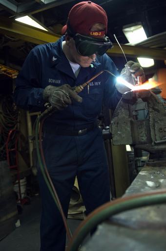 | Keywords: Working aboard USS Essex DVIDS101428.jpg en Petty Officer 3rd Class Joshua Bowman hull technician assigned to the forward deployed amphibious assault ship USS Essex brazes a component to be used in a manifold for filling water bottles Essex serves as the flagship for CTF 76 the Navy's only forward deployed amphibious force commander 2008-05-09 Seaman Gabriel Weber https //www dvidshub net/image/101428 080509-N-+++++-006 2008-07-08 23 57 SOUTH CHINA SEA USPACOM AT SEA PD-USGov-Military-Navy USS Essex LHD-2 Images from DoD uploaded by Fæ |