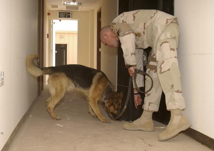 Keywords: Working Dogs Get Training DVIDS25740.jpg en SOUTHWEST ASIA -- Aris a five-year-old German Shepherd and his handler Senior Airman Aaron Lee of the 386th Expedtionary Security Forces Squadron military working dog flight go through explosive ordnance detection training here July 13 Their are four dogs and 10 handlers in the flight Airman Lee is deployed from Seymour Johnson Air Force Base N C 2006-07-13 https //www dvidshub net/image/25740 25740 2006-07-14 10 33 PD-USGov Seymour Johnson Air Force Base Images from DoD uploaded by Fæ |
