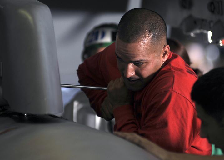 | Keywords: Working on the fuel tank DVIDS105215.jpg  en Petty Officer 1st Class Hiran Carrero loosens a nut holding one of the fuel tanks of an F/A-18F Super Hornet assigned to the Blacklions of Strike Fighter Squadron 213 in the hangar bay of the Nimitz-class aircraft carrier USS Theodore Roosevelt The Theodore Roosevelt Carrier Strike Group is currently participating in Joint Task Force Exercise Operation Brimstone off the Atlantic coast 2008-07-22 Petty Officer 2nd Class Nathan Laird https //www dvidshub net/image/105215 080722-N-+++++-001 2008-07-24 10 01 USNORTHCOM AT SEA PD-USGov-Military-Navy F/A-18F Super Hornet USS Theodore Roosevelt CVN-71 Images from DoD uploaded by Fæ Photographs by Nathan Laird |