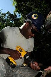 Keywords: Working on the school DVIDS122512.jpg en Air Force Airman 1st Class Pasha Hughes a civil engineer embarked aboard the amphibious assault ship USS Kearsarge drills a screw into a bench at Soccoro Sanchez Primary School during the humanitarian/civic assistance mission Continuing Promise 2008 Kearsarge is the primary platform for the Caribbean phase of CP an equal-partnership mission involving the United States Canada the Netherlands Brazil France Nicaragua Colombia Dominican Republic Trinidad and Tobago and Guyana 2008-10-05 Petty Officer 2nd Class William Parker https //www dvidshub net/image/122512 081005-N-+++++-101 2008-10-15 22 38 SANTO DOMINGO DO PD-USGov-Military-Navy USS Kearsarge LHD-3 Images from DoD uploaded by Fæ |