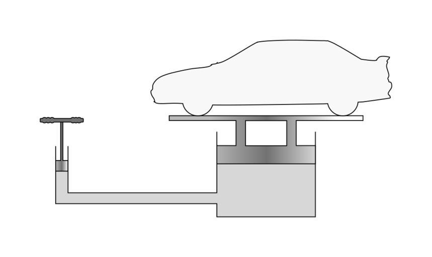 Keywords: Working principle of a hydraulic jack.svg en The working principle of a hydraulic jack fr Schéma de principe d ™un cric hydraulique 2012 own Olivier Cleynen other versions cc-zero Uploaded with UploadWizard Hydraulic jacks SVG physics