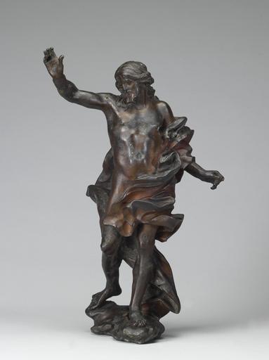| Keywords: Workshop of Gian Lorenzo Bernini - The Risen Christ - Walters 542281 - View A.jpg  In 1673 Bernini was commissioned by Pope Clement X to design gilded figures of the twelve apostles and the Risen Christ to crown the tabernacle of the Chapel of the Blessed Sacrament in St Peter's Basilica Working from Bernini's designs Giovanni Rinaldi made the models Girolamo Lucenti the bronze founder had problems casting the Risen Christ and the initial bronze cast had a flaw across its chest This cast now partially repaired and in the Walters' collection was left in a rough state The model was recast gilded and installed in St Peter's Christ's idealized body recalls ancient sculptures of the sun-god Apollo praised as having a perfect physique His striding pose is beautifully balanced while his ascent toward heaven is suggested by the deeply carved fluttering drapery seemingly responding to an invisible wind and creating a strong play of light and shadow Bernini was the greatest sculptor of his age He imbued figures of both metal and marble with an unsurpassed sense of life and motion between 1673 1674 Baroque bronze cm 44 accession number 54 2281 1418 Henry Walters Baltimore formerly in the Baltimore office of Henry Walters date and mode of acquisition unknown C Morgan Marshall date and mode of acquisition unknown Walters Art Museum Gift of C Morgan Marshall 1942 Going for Baroque The Walters Art Gallery Baltimore 1995-1996 Vatican Treasures Early Christian Renaissance and Baroque Art from the Papal Collections The Cleveland Museum of Art Cleveland 1998 A Magnificent Age Masterpieces from the Walters Art Museum Baltimore The Nelson-Atkins Museum of Art Kansas City; Mint Museum of Art Charlotte; The Walters Art Museum Baltimore 2002-2004 The Sculpture of Gianlorenzo Bernini Kimbell Art Museum Fort Worth 1982 The Taste of Maryland Art Collecting in Maryland 1800-1934 The Walters Art Gallery Baltimore 1984 The Allure of Bronze The Walters Art Gallery Baltimore 1995 place of origin Rome Italy Walters Art Museum license Baroque sculpture in the Walters Art Museum Sculptures by Gianlorenzo Bernini Media contributed by the Walters Art Museum needs category review |