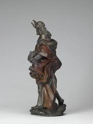 Keywords: Workshop of Gian Lorenzo Bernini - The Risen Christ - Walters 542281 - View E.jpg In 1673 Bernini was commissioned by Pope Clement X to design gilded figures of the twelve apostles and the Risen Christ to crown the tabernacle of the Chapel of the Blessed Sacrament in St Peter's Basilica Working from Bernini's designs Giovanni Rinaldi made the models Girolamo Lucenti the bronze founder had problems casting the Risen Christ and the initial bronze cast had a flaw across its chest This cast now partially repaired and in the Walters' collection was left in a rough state The model was recast gilded and installed in St Peter's Christ's idealized body recalls ancient sculptures of the sun-god Apollo praised as having a perfect physique His striding pose is beautifully balanced while his ascent toward heaven is suggested by the deeply carved fluttering drapery seemingly responding to an invisible wind and creating a strong play of light and shadow Bernini was the greatest sculptor of his age He imbued figures of both metal and marble with an unsurpassed sense of life and motion between 1673 1674 Baroque bronze cm 44 accession number 54 2281 1418 Henry Walters Baltimore formerly in the Baltimore office of Henry Walters date and mode of acquisition unknown C Morgan Marshall date and mode of acquisition unknown Walters Art Museum Gift of C Morgan Marshall 1942 Going for Baroque The Walters Art Gallery Baltimore 1995-1996 Vatican Treasures Early Christian Renaissance and Baroque Art from the Papal Collections The Cleveland Museum of Art Cleveland 1998 A Magnificent Age Masterpieces from the Walters Art Museum Baltimore The Nelson-Atkins Museum of Art Kansas City; Mint Museum of Art Charlotte; The Walters Art Museum Baltimore 2002-2004 The Sculpture of Gianlorenzo Bernini Kimbell Art Museum Fort Worth 1982 The Taste of Maryland Art Collecting in Maryland 1800-1934 The Walters Art Gallery Baltimore 1984 The Allure of Bronze The Walters Art Gallery Baltimore 1995 place of origin Rome Italy Walters Art Museum license Baroque sculpture in the Walters Art Museum Sculptures by Gianlorenzo Bernini Media contributed by the Walters Art Museum needs category review |