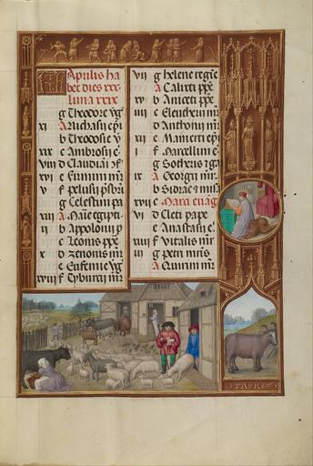 | Keywords: Workshop of the Master of James IV of Scotland (Flemish, before 1465 - about 1541) - Farm Animals, Milking, and Buttermaking; Zodiacal Sign of Taurus - Google Art Project.jpg 1465 1541 before 1465 - about 1541 6837256 Workshop of the Master of James IV of Scotland Flemish Flemish 1465 - 1541 /collection/the-j-paul-getty-museum/artwork/farm-animals-milking-and-buttermaking-zodiacal-sign-of-taurus-workshop-of-the-master-of-james-iv-of-scotland-flemish-before-1465-about-1541/6842156/ Workshop of the Master of James IV of Scotland Flemish before 1465 - about 1541 illuminator /artist/workshop-of-the-master-of-james-iv-of-scotland/6817655/ 6817655 /collection/the-j-paul-getty-museum/ The J Paul Getty Museum 343005 http //www getty edu/museum 3/12/2012 3 44 36 PM /collection/the-j-paul-getty-museum/artwork/farm-animals-milking-and-buttermaking-zodiacal-sign-of-taurus-workshop-of-the-master-of-james-iv-of-scotland-flemish-before-1465-about-1541/6842156/ 1510 about 1510 - 1520 Taurus Tempera colors gold and ink on parchment 232 6842156 True 1520 3/25/2012 1 34 56 PM lido getty edu-gm-obj4195 http //www getty edu/art/gettyguide/artObjectDetails artobj 4195 http //www getty edu/legal/copyright html Folio 1510 1530 Bruges Belgium Creation w167 x h232 cm about 1510 - 1520 False 0 671875 Part farm-animals-milking-and-buttermaking-zodiacal-sign-of-taurus-workshop-of-the-master-of-james-iv-of-scotland-flemish-before-1465-about-1541 Farm Animals Milking and Buttermaking; Zodiacal Sign of Taurus f 167 Tempera colors gold and ink on parchment Taurus http //www getty edu/legal/copyright html special url_id dwHLeVaVbxYWQA PD-old-100-1923 1541 Google Art Project works by Master of James IV of Scotland workshop of Signs of Western astrology in art Zodiac in medieval miniatures Taurus astrology MS LUDWIG IX 18 Getty museum - Spinola Hours Farming in medieval miniature Medieval miniatures of shepherds |